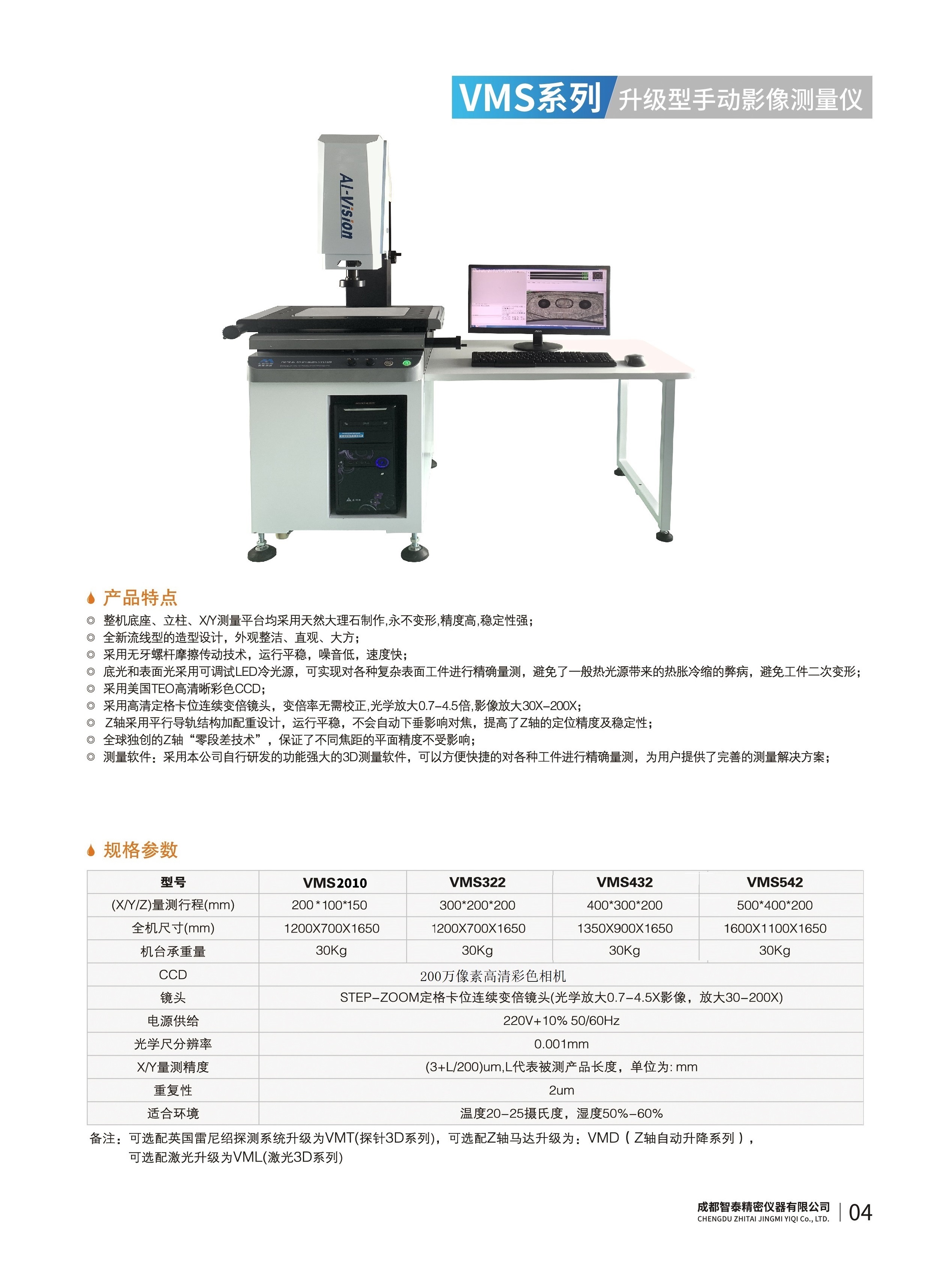 成都智泰精密儀器有限公司專注于精密測量儀器,人工智能,智能制造領域,專業(yè)從事智能視覺自動化檢測解決方案的貿易型企業(yè)。公司成立于2011年,位于天府之國成都,現有行業(yè)精英十余人,辦公倉儲面積200余平米。 公司主要產品為精密光學影像測量儀,精密輪廓形狀測量儀,精密機器人定位系統,精密智能視覺尺寸檢測儀器,精密表面缺陷智能檢測設備,工業(yè)工程特種機器人。 公司憑借過硬的技術實力和產品方案,率先進入智能視覺自動化檢測領域,推廣以精密智能視覺自動化檢測為基礎的機器人自動化應用,公司不斷整合上下游的資源,擁有巨大的全產業(yè)鏈優(yōu)勢。客戶群體覆蓋了我國精密制造業(yè)的多數領域,包括航空、航天、軍工、汽車、新能源、光伏、食品,精密電子、精密機械、模具、PCB、LCD、五金、塑膠、醫(yī)療、教育、計量及科研院所等行業(yè)。 公司創(chuàng)新的產品能滿足生產與制造行業(yè)客戶的要求,訓練有素的工程師能及時提供多種技術服務,如解...